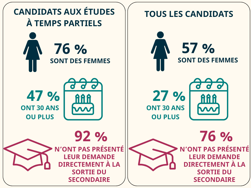 Comment les candidats aux études à temps partiel se comparent-ils à l’ensemble des candidats?